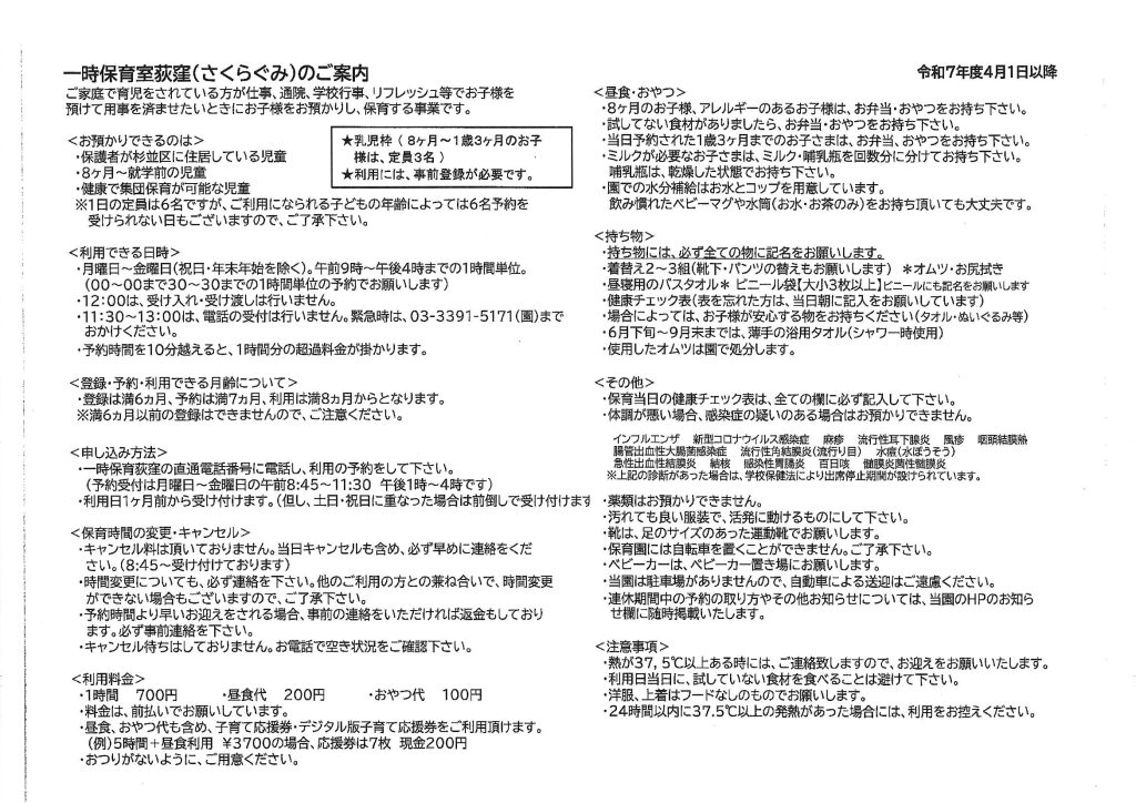 一時保育室荻窪(さくら組)のご案内