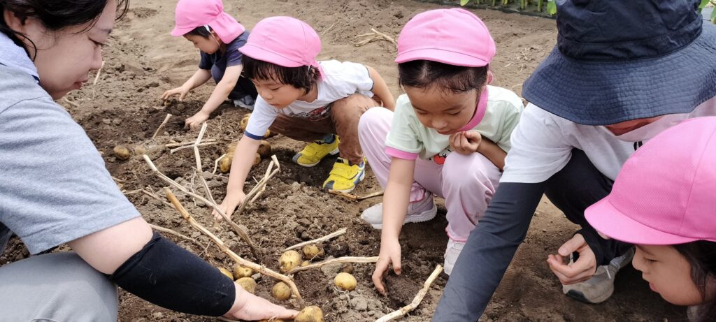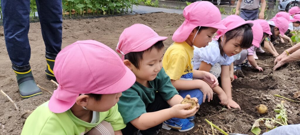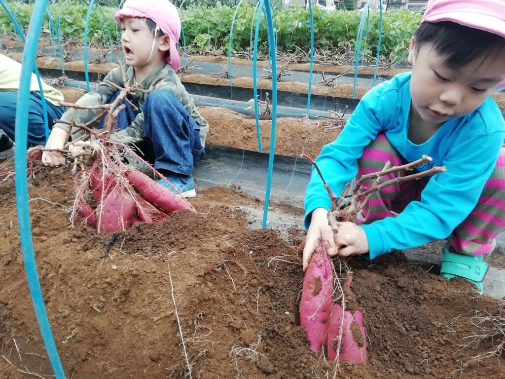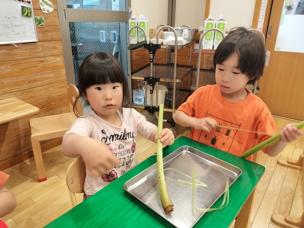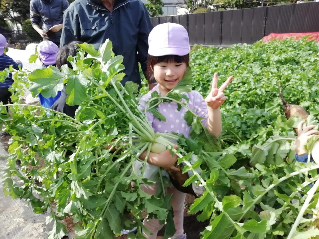 野の花保育園では、子供たちに旬の野菜に触れてもらい、