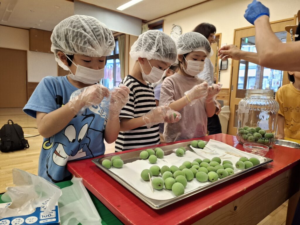 前庭で採れた梅を使って、「梅ジュース」「梅干し」を作りました。気温が高い日が長く続いたので