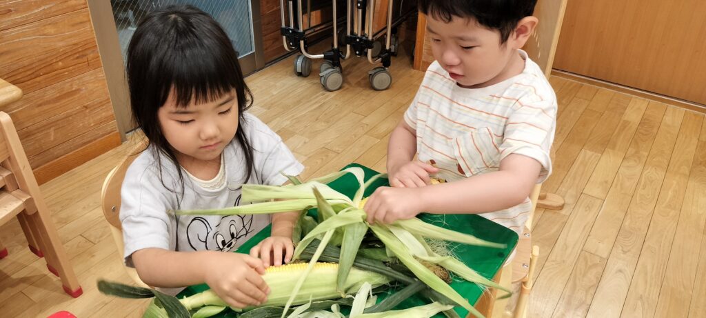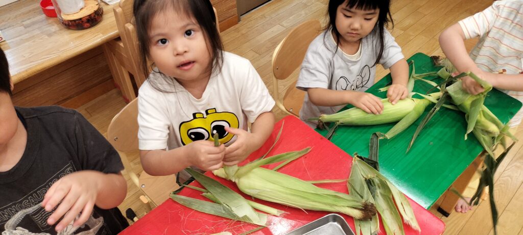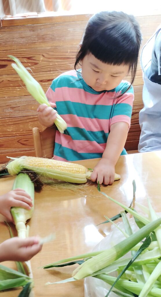 夏の暑い季節は、旬のとうもろこしの皮をむいたり